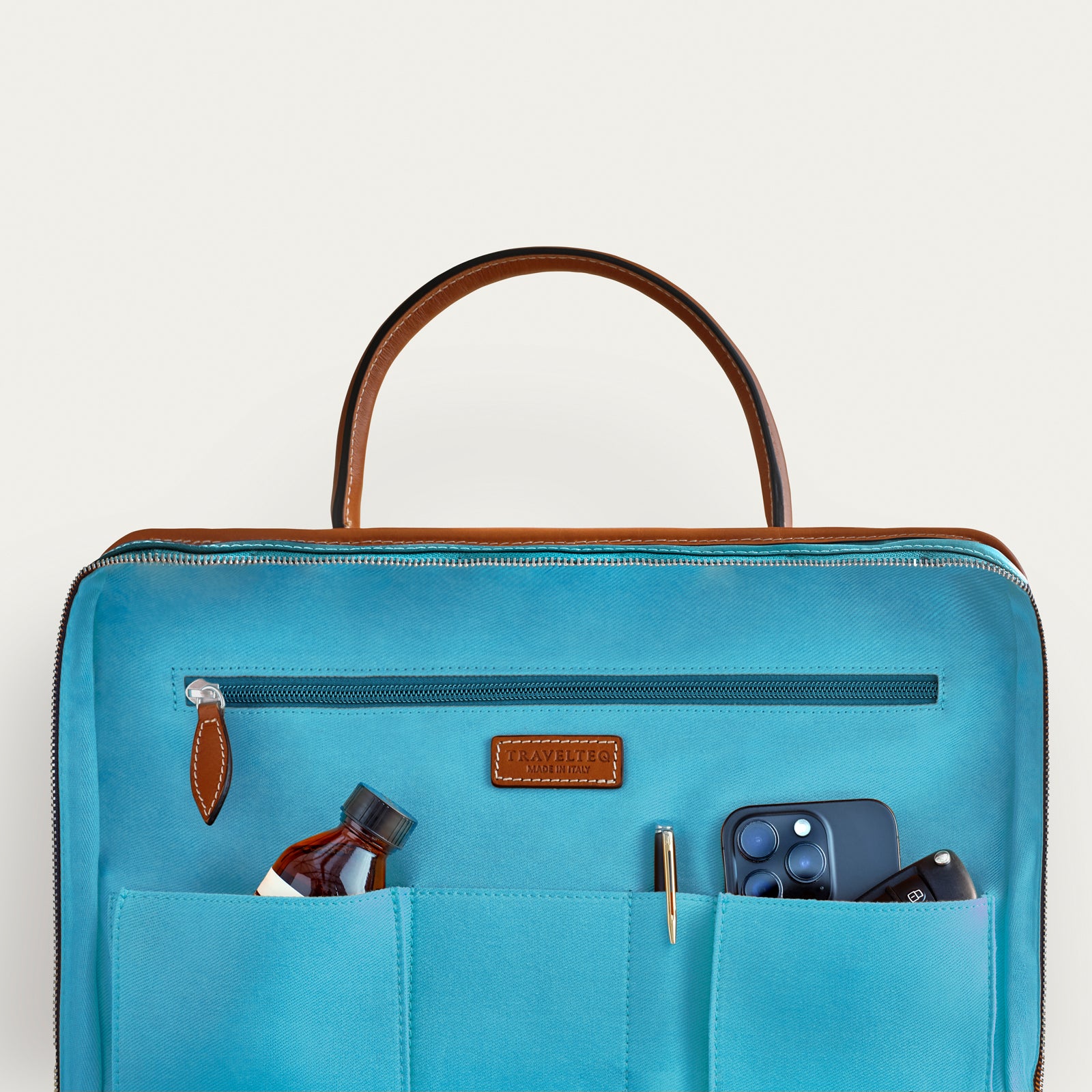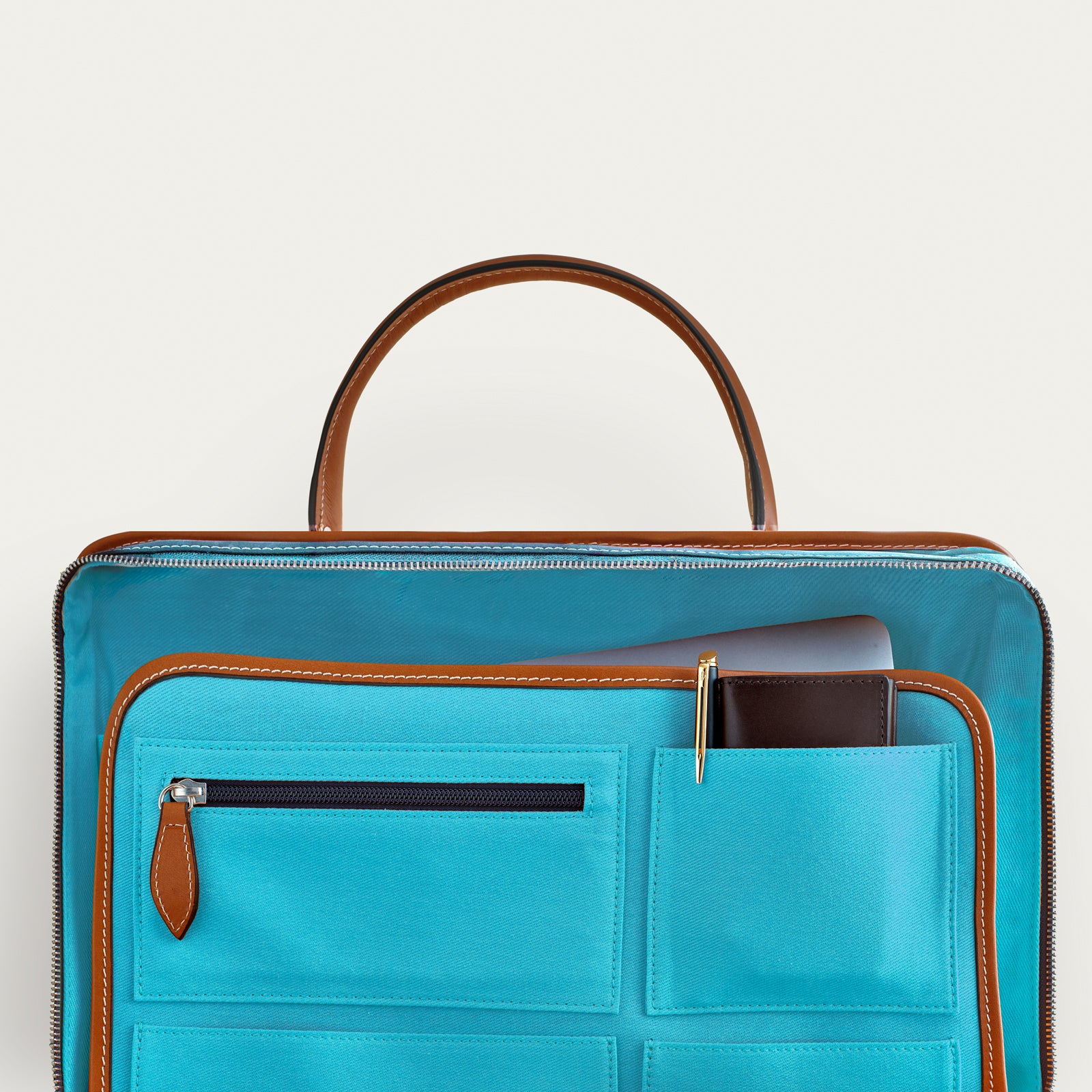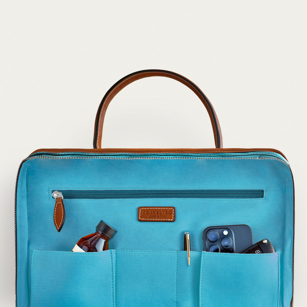 The exterior combines rich leather with highly durable Partex Group nylon, giving it a sleek yet resilient finish. Inside, you’ll find smart compartments, including a padded section for laptops up to 16 inches and dedicated pockets for essentials. Features precision YYK Excella zippers and a trolley strap for effortless travel. Note: This bag does not include a shoulder strap.