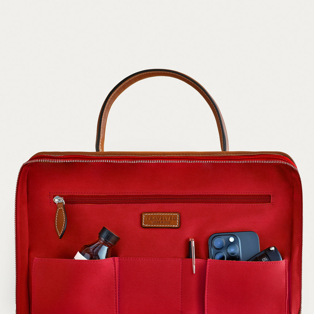 The exterior combines rich leather with highly durable Partex Group nylon, giving it a sleek yet resilient finish. Inside, you’ll find smart compartments, including a padded section for laptops up to 16 inches and dedicated pockets for essentials. Features precision YKK Excella zippers and a trolley strap for effortless travel. Note: This bag does not include a shoulder strap.