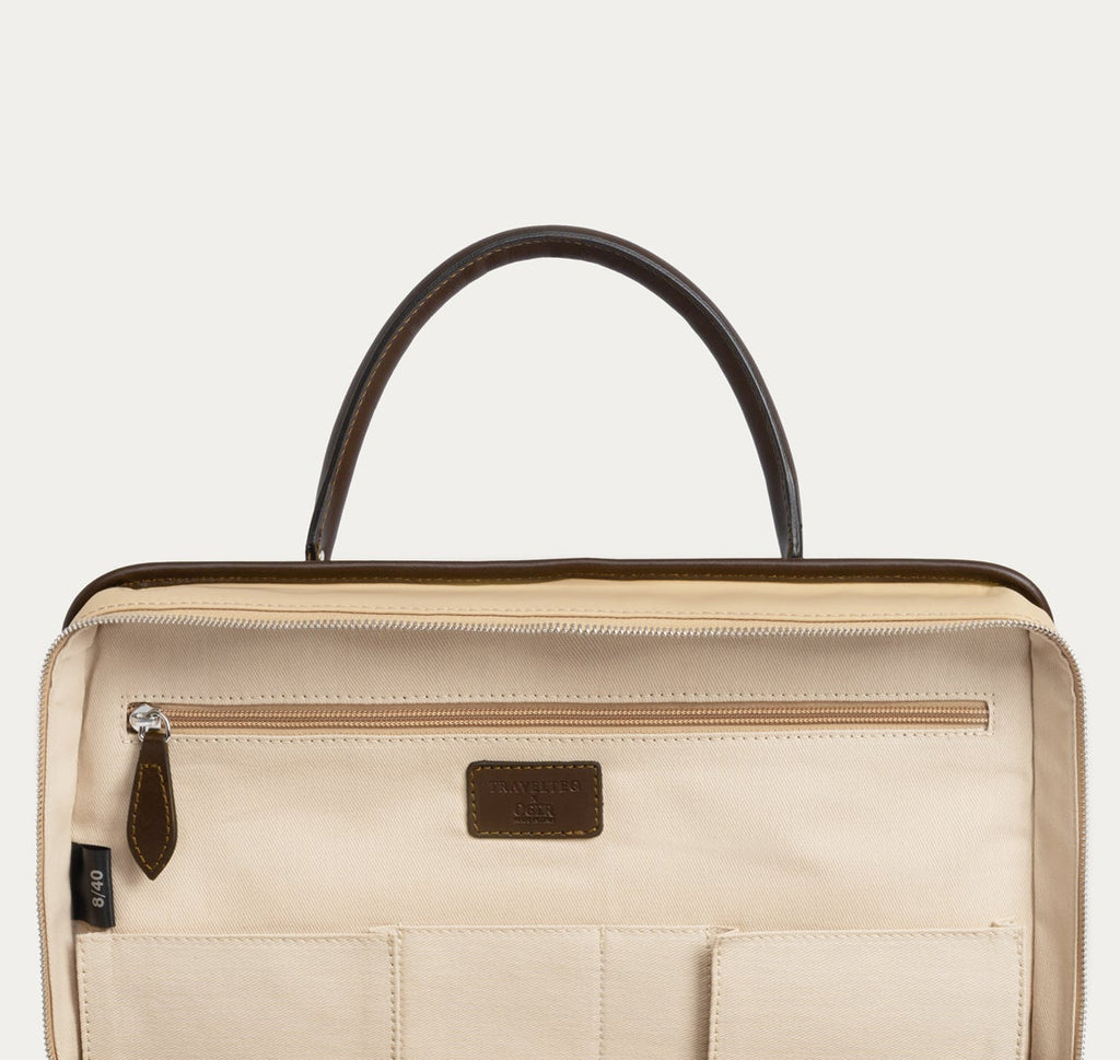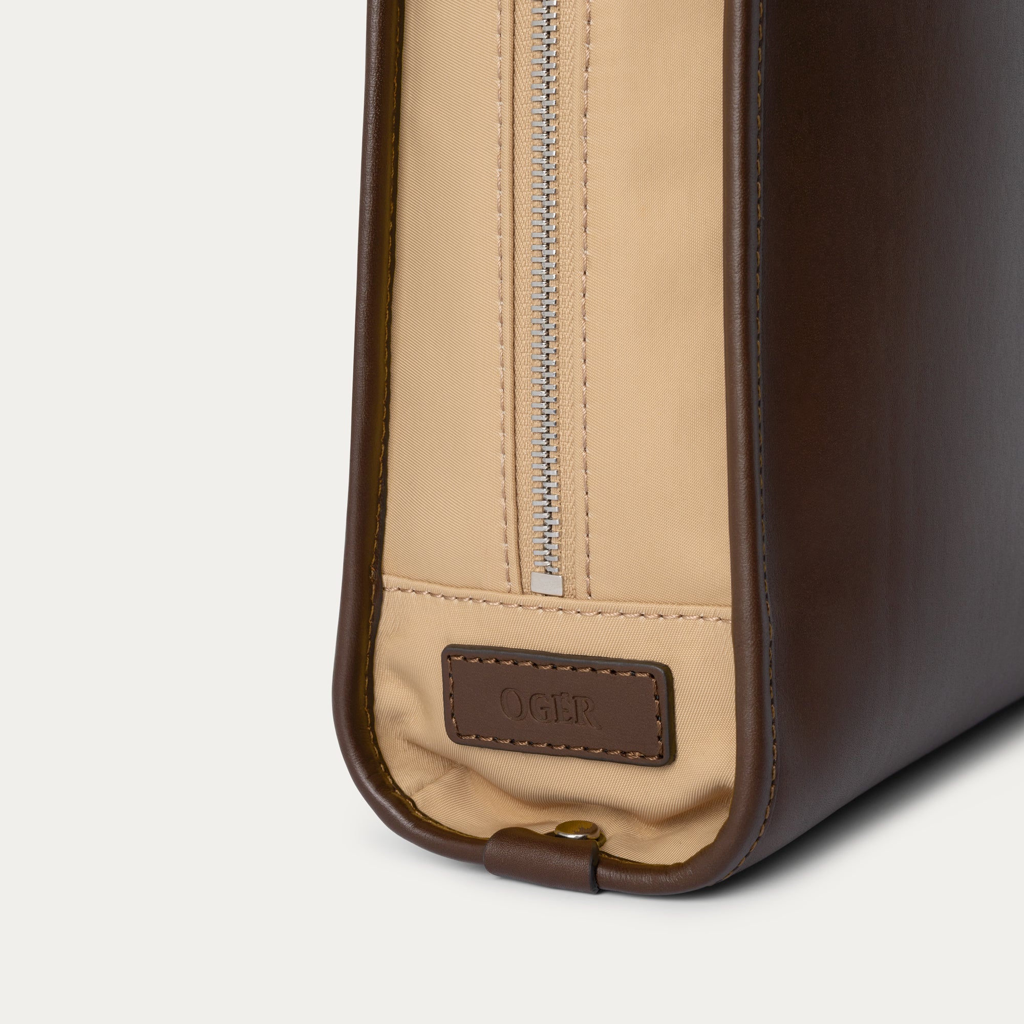 Crafted for the discerning professional, this limited-edition Briefcase blends timeless aesthetics with smart functionality. Designed in close collaboration with OGÉR Amsterdam, the bag is distinguished by its rich Espresso Brown Italian Vachetta leather, paired with beige Partex nylon for a subtle yet sophisticated contrast.