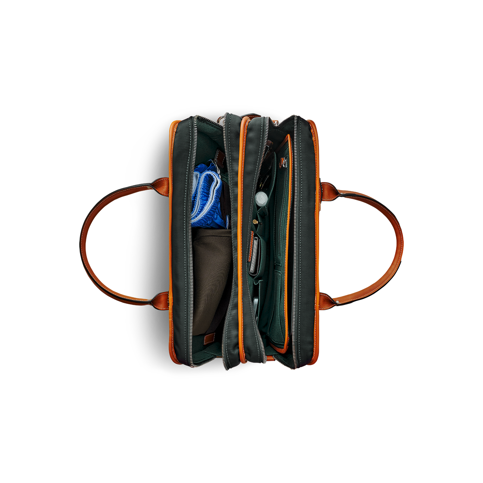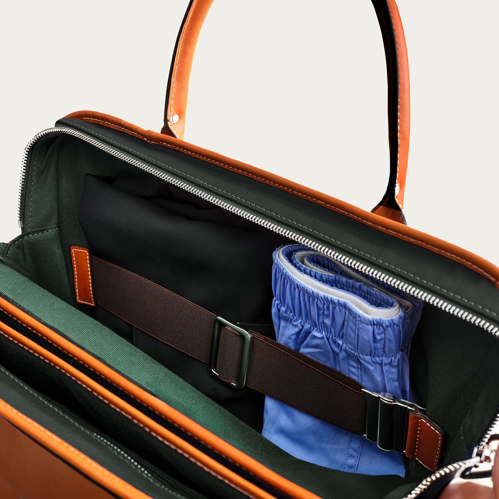 Your ideal companion for overnight business trips. The Overnight bag offers double the space of the Briefcase, with room for clothing, tech, and documents. It features a padded laptop compartment, multiple pockets, and space for a change of clothes, all neatly organized.